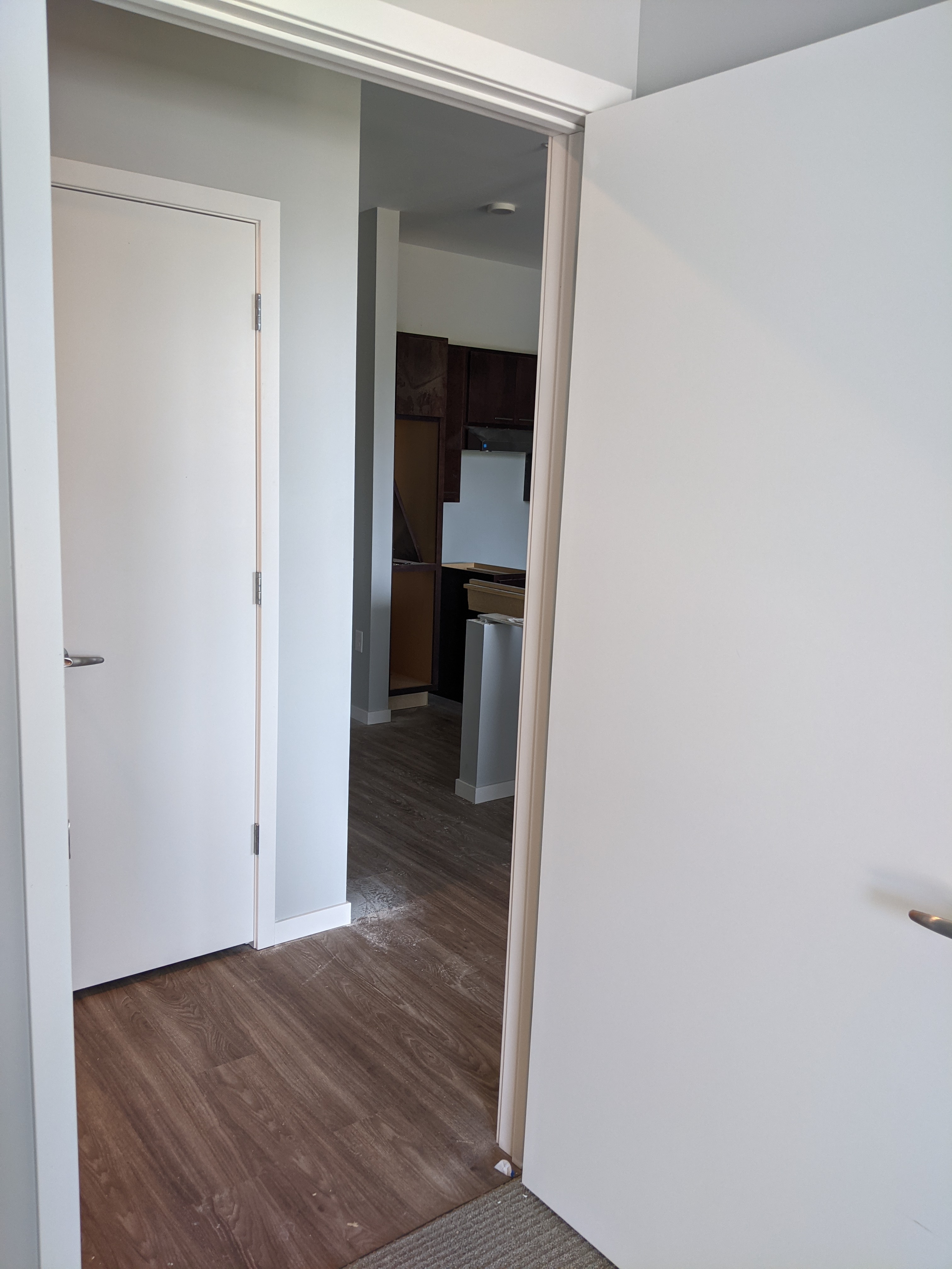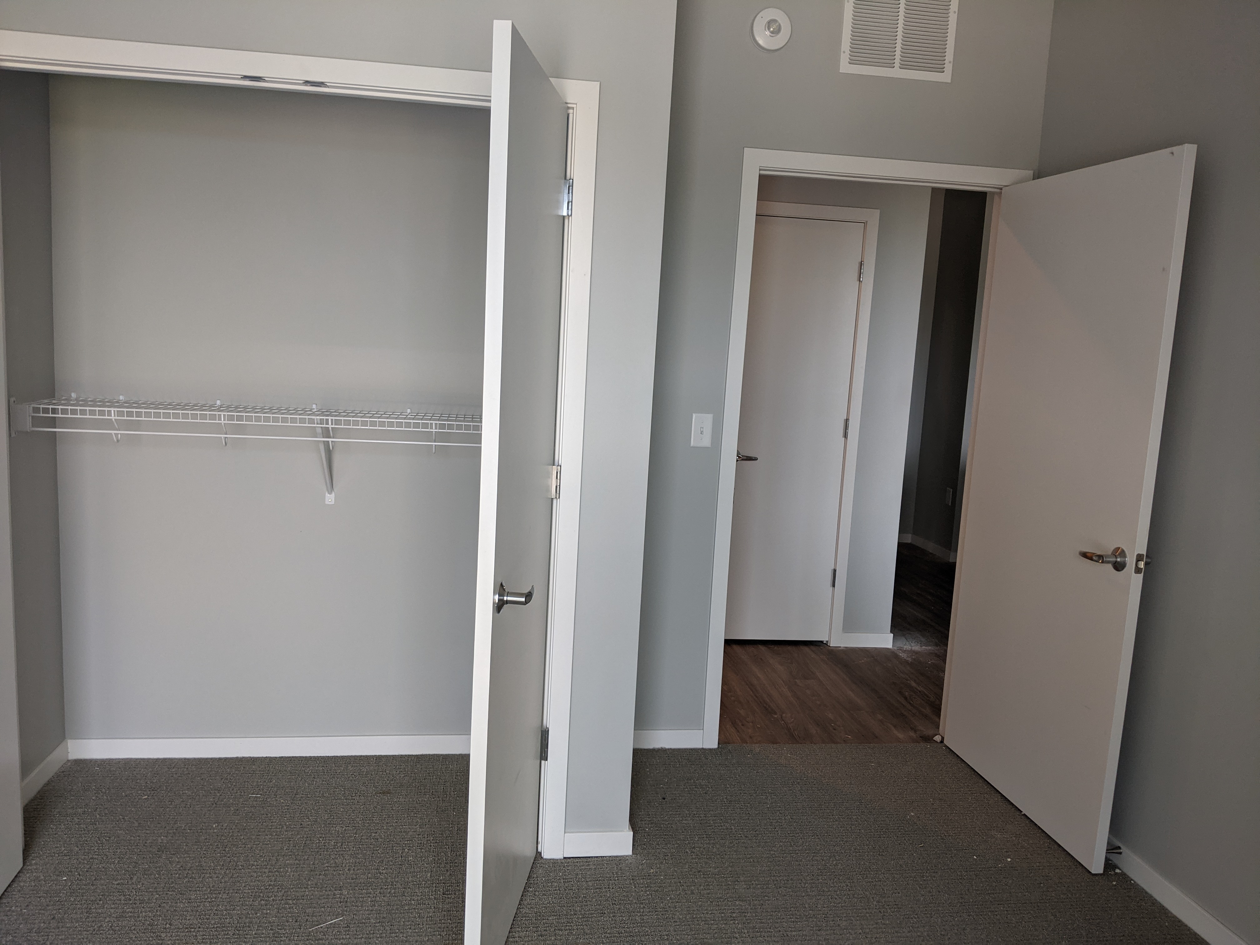 - Space is smaller because of the addition of the hallway and then carving out a separate closet in the bedroom cutting down on square footage.
