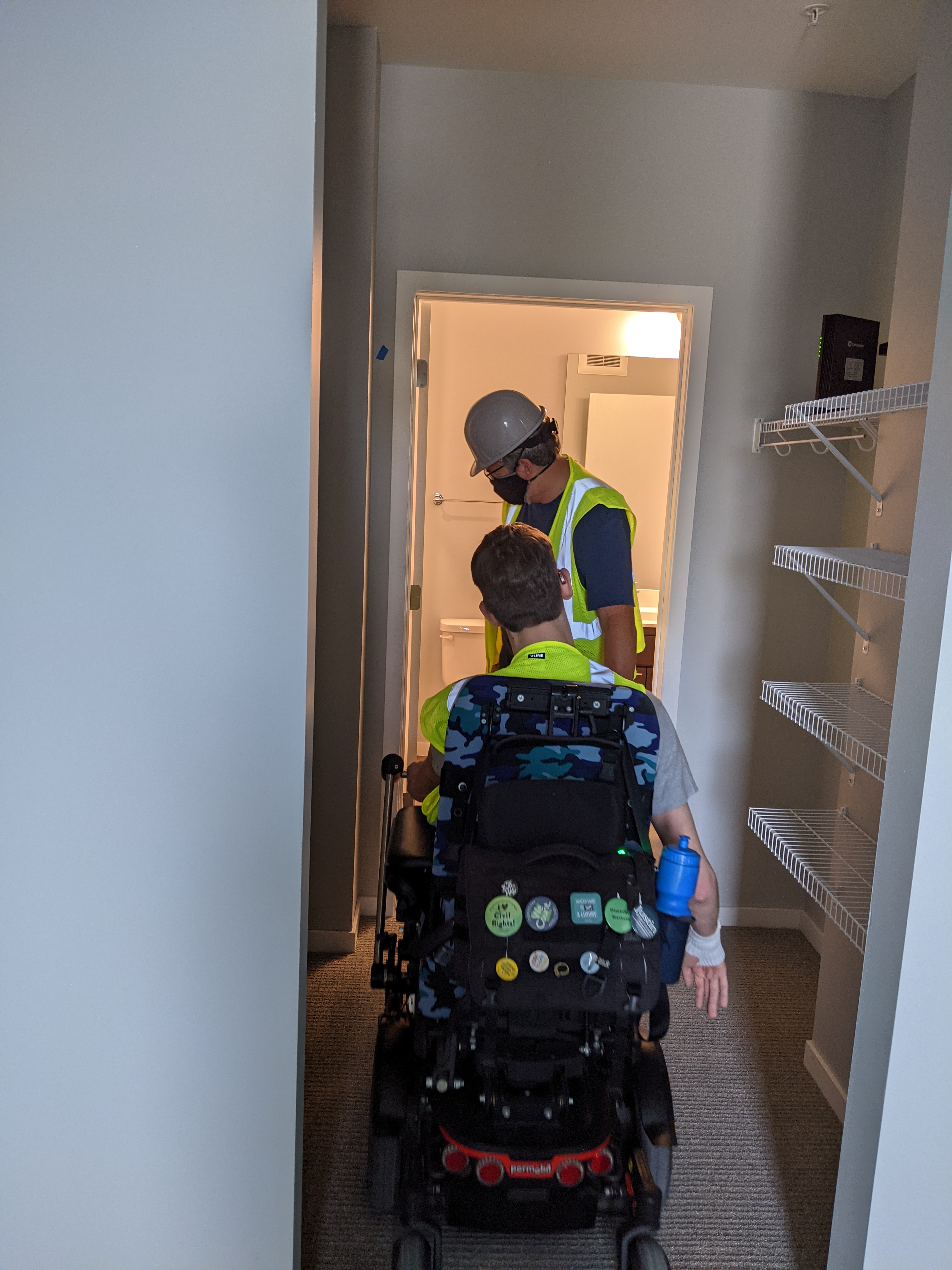 - Start advocating for changes in building code requirements that outline what constitutes universal or barrier-free design that works for wheelchair users or anyone with mobility needs. Also, require a certain percentage of units to be universally accessible in new construction. More than the 2% in the apartment building we toured would be lovely.