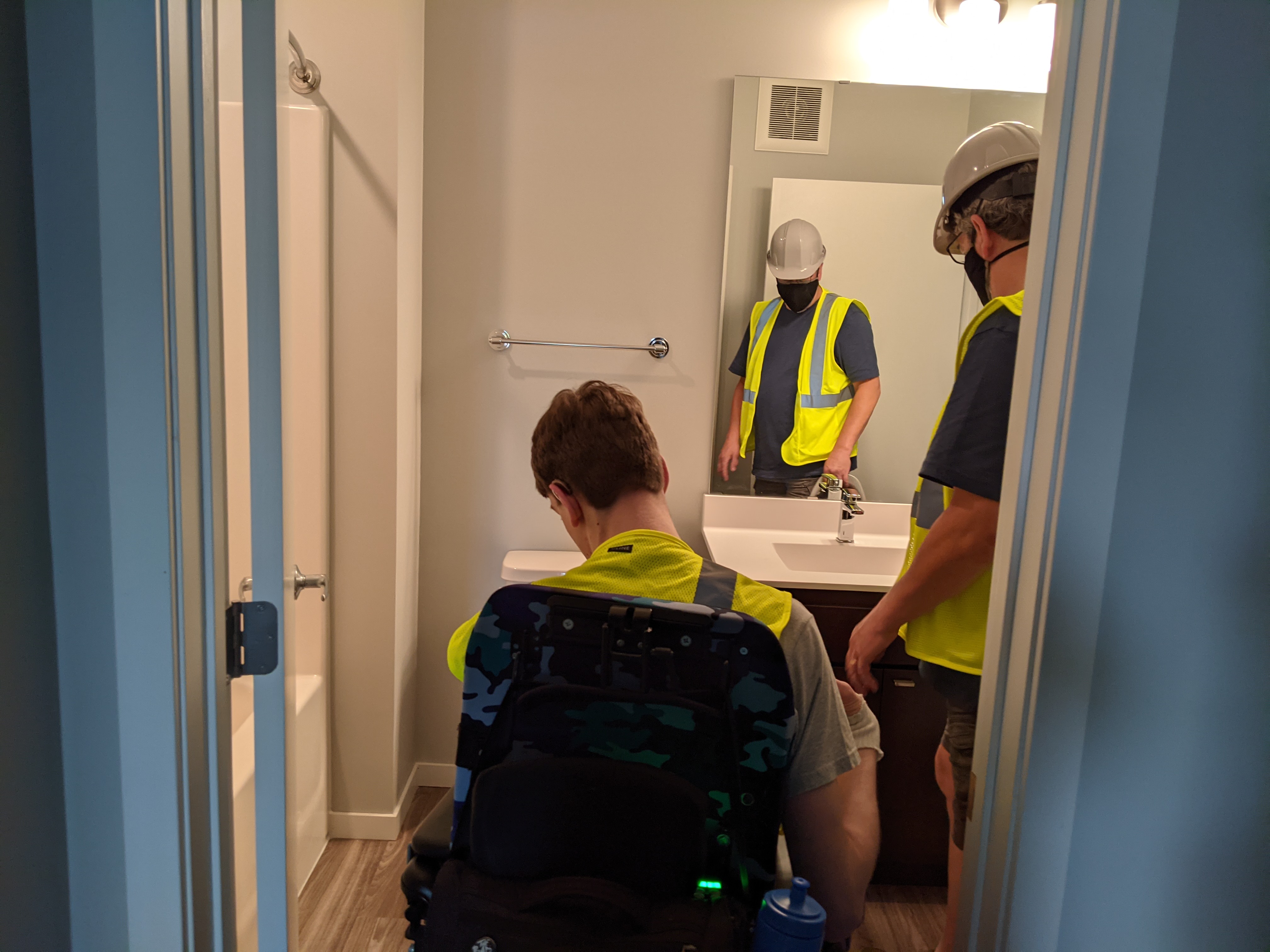 - There was a 2nd door out of the bathroom that made it easier to go in one way and out the other because without adding another couple feet to the bathroom there isn’t room to turn my power chair around.